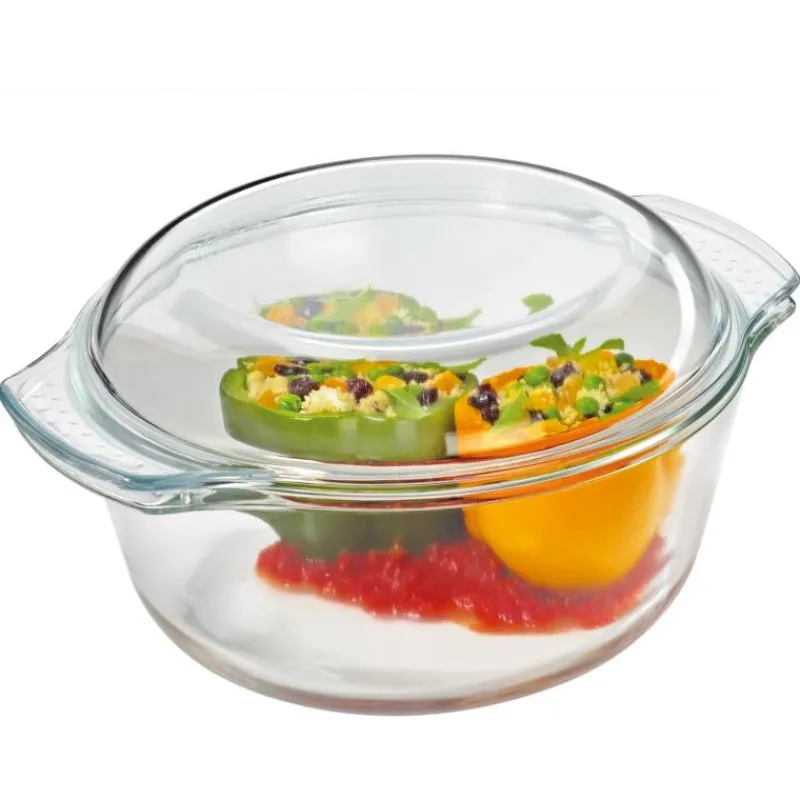 Die Kollektion Elsass von Küchenprofi bietet alles, was eine gute Auflaufform ausmacht: sie besteht aus hitzebeständigem, transparentem Glas, ist bis zu 250°C ofenfest und lässt sich problemlos in der Spülmaschine reinigen. Da sie auch Kältetemperaturen bis zu -40°C verträgt, lassen sich Reste einfach wieder einfrieren oder vorgekochte Speisen im Gefrierfach für später Aufbewahren. Auch die Eignung für den Einsatz in der Mikrowelle macht die Auflaufform ideal fürs Meal Prepping. Praktischerweise lässt sich der Deckel der Ofenform auch einzeln als Schale oder Auflaufform für kleinere Portionen nutzen. Die Auflaufform hat einen Durchmesser von 22 cm und 13,5 cm hoch. Sie hat ein Fassungsvermögen von 2,8 Litern.