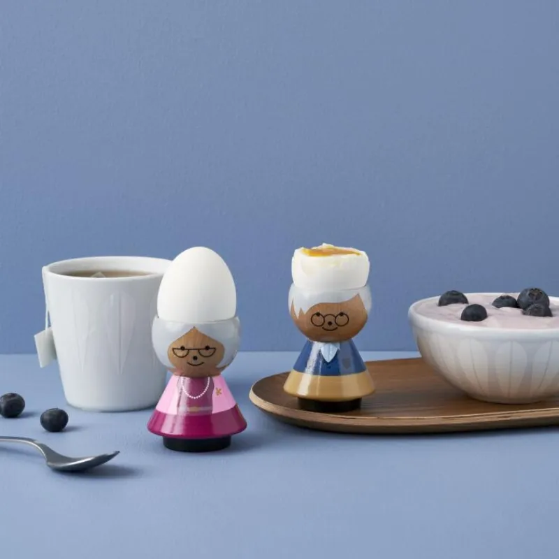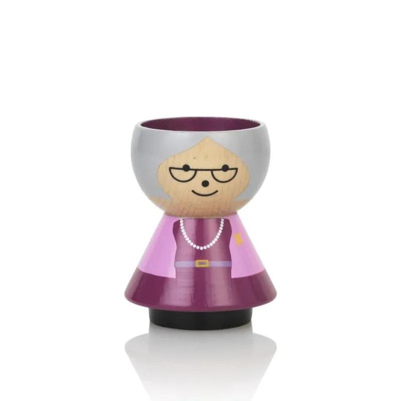Die Serie Bordfolk von Lucie Kaas haucht einem Designliebling der 160er und 70er Jahre neues Leben ein. Die Kollektion lustiger Eierbecher ist eine Mischung aus ursprünglichem Design und modernen Ideen, die sich im Outfit der kleinen Becher widerspiegeln. Jeder Eierbecher hat einen ganz eigenen Charakter, der mit seinem einfach und bunten Design das Kind in uns anspricht. Die Großmutter mit Halbmondbrille und Perlenkette ist sieben Zentimeter hoch und aus handbemaltem Buchenholz gefertigt. Der Eierbecher ist nicht für die Reinigung in der Spülmaschine geeignet.
