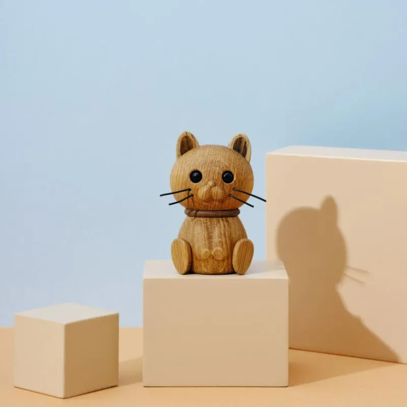 Nutti heißt die neue Kollektion von handgefertigten Holzfiguren, die skandinavische Eleganz mit spielerischem Ausdruck verbinden. Alle Tiere der Serie sind aus natürlichen Materialien hergestellt, die jedem Interieur Wärme und Persönlichkeit verleihen. Mit ihren niedlichen Gesichtern und liebevollen Details sind die Holzfiguren mehr als nur Dekoration: sie sind kleine Kunstwerke, die garantiert Freude in den Alltag bringen. Die Katze Misse ist mit ihren winzigen Schnurrhaare und den frechen Ohren ein Muss für Katzenliebhaber. Sie besteht aus Eichen- und Walnussholz und ist 7,8 cm hoch.