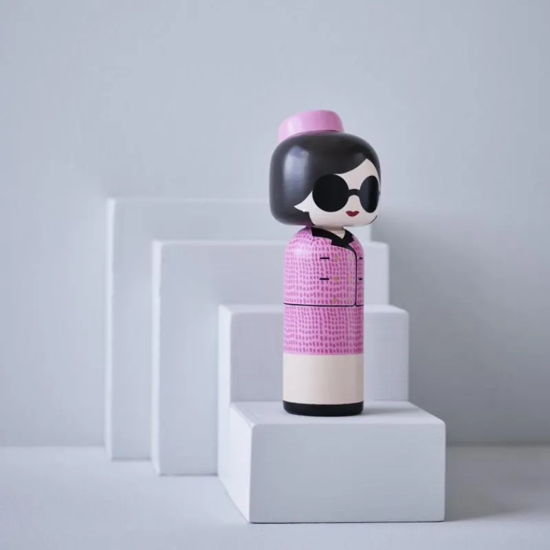 Bekannt geworfen als First Lady der USA als Ehefrau von John F. Kennedy, war Jackie Kennedy Onassis noch so viel mehr: Journalistin, Verlagslektorin, Stilikone und Kulturfördernde. Als meistfotografierte First Lady war das Medieninteresse an ihr groß und ihr Stil oft kopiert, besonders die für sie typischen Pillbox-Hüte. Die Kokeshi-Holzfigur aus handbemaltem Holz ist 16 cm hoch. Kleine Unregelmäßigkeiten sind typisch für die Bemalung per Hand und machen jede Puppe zu einem Unikat.
