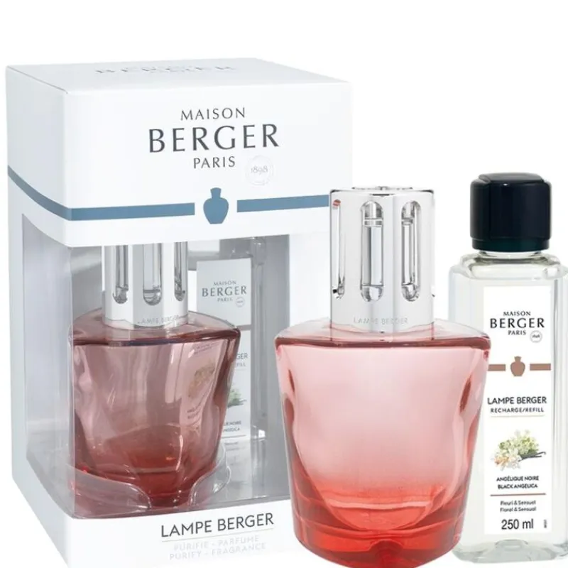 Die katalytische Lampe Terra Rouge ist im Geschenkset komplett mit Brenner, Trichter, Löschkappe sowie dem Parfum de Maison Black Angelica in der Füllmenge 250 ml erhältlich. Angélique Noire ist eine Duftneuheit wie eine bezaubernde, orientalische Blüte: eine seltene Duftessenz voller erotischer Opulenz, edler Raffinesse und vornehmer Sanftheit. Die schwarze Angelika wird von der Süße der Vanille umhüllt und ruht auf einem Bett aus Sandel- und Amberholz. Die leicht konisch zulaufende Form der Lampe ist ideal, um die Produkte von Maison Berger Paris kennenzulernen. Die rote Duftlampe wird in der typischen Geschenkbox von Maison Berger Paris geliefert.