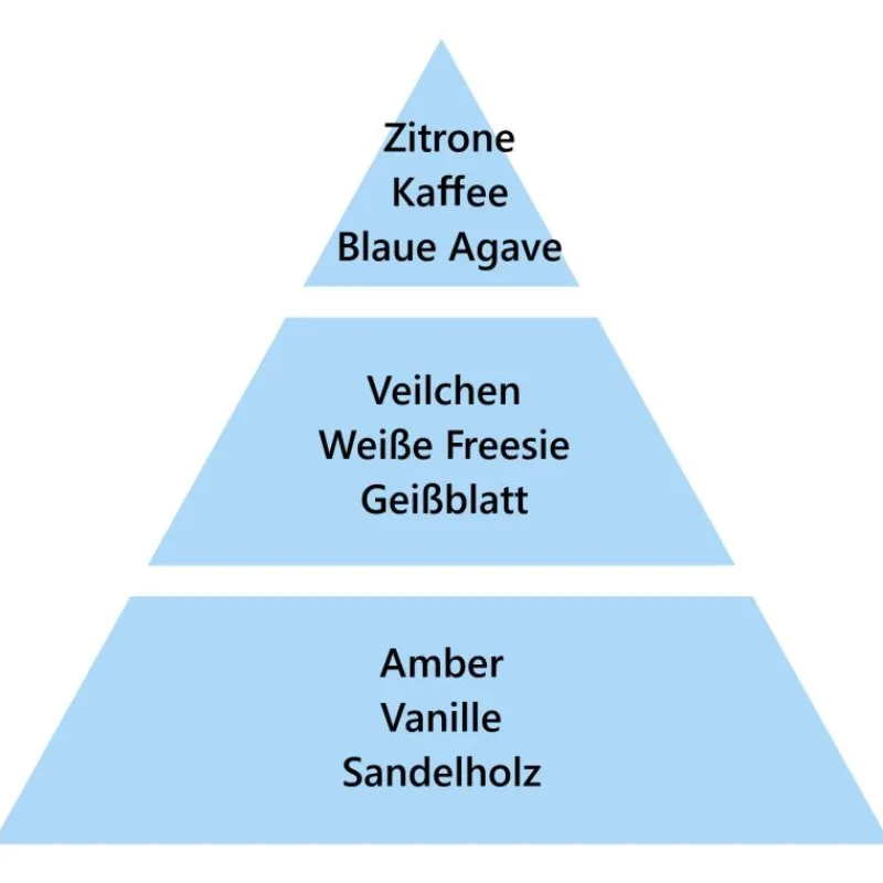 Unschuldig und sanft vereinen sich in der Duftessenz In den Agaven-Gärten Noten der blauen Agave, aus weißen Blütenblättern der Freesie Veilchen zu einem harmonischen Raumduft voller Romantik und zärtlicher Weichheit. Die zitronig-frische Kopfnote sowie die florale Herznote trifft dabei auf eine Basisnote aus süßer Vanille und weichen Amber- und Sandelholzakzenten.