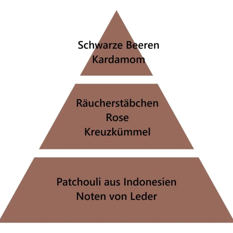 Elegant und sinnlich betört die Duftkomposition Kraftvolles Leder mit würzigen Noten aus Kardamom, dem süßlichen Duft von Räucherstäbchen, Kümmel und Patchouli. Ledrige Noten verleihen diesem Duft eine animalische Facette, die ihm Lebendigkeit und mit Nuancen aus Rose und schwarzen Beeren Frische verleiht.