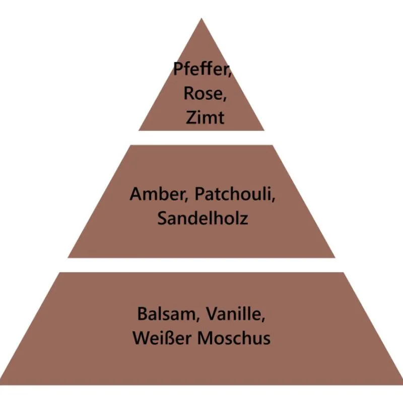 In diesem Parfum kann der Amber seine Nuancen perfekt entfalten. Sein sinnlicher Duft wird durch sanfte Vanillenoten und einen Hauch von Sandelholz, Patchouli und Moschus abgerundet.
