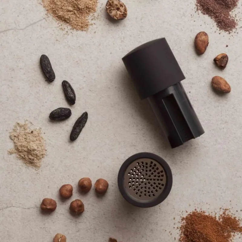 Mit der Muskatmühle 2 in 1 von Microplane lassen sich nicht nur Gewürze wie Muskatnuss, Zimt und Tonkabohnen mühelos reiben, sondern auch im hohlen Deckel aufbewahren. Die Mühle mahlt auch Gewürze wie Pfeffer, Kräuter und Getreidekörner fein und präzise und liefert so hochwertige Ergebnisse und ein vollmundiges Aroma. Ihr praktischer Silikonverschluss vermeidet außerdem Gewürzstaub. Sie lässt sich ganz leicht in der Spülmaschine reinigen.