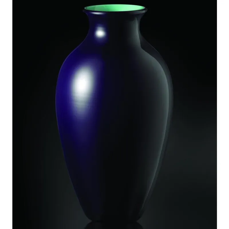 Die Miniantares-Serie von Nasonmoretti ist modern, dekorativ und hochwertig – so auch die Vase 0010 in der Farbe Dunkellila. Die edle Vase ist von innen mit mehreren dünnen Glasschichten in zartem Wassergrün überzogen. Das formvollendete Gefäß ist ein ganz besonderer Blickfänger, das auf dem Sideboard, im Regal oder einer Vitrine für modernes, italienisches Flair sorgt. Die Vase ist 14,2 cm hoch und hat einen Durchmesser von 7,5 cm. Der dunkle Lilaton kontrastiert mit dem zarttürkisfarbenem Inneren, trotzdem wirkt die Vase harmonisch und trägt zu einem edlen und eindrucksvollen Wohnambiente bei.