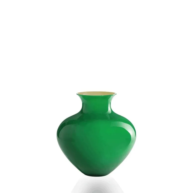 Die Miniantares-Serie von Nasonmoretti ist modern, dekorativ und hochwertig – so auch die Vase 0040 in der Farbe Grün. Die edle Vase ist von innen mit mehreren dünnen Glasschichten in zartem Creme überzogen. Das formvollendete Gefäß ist ein ganz besonderer Blickfänger, das auf dem Sideboard, im Regal oder einer Vitrine für modernes, italienisches Flair sorgt. Die Vase ist 10 cm hoch und hat einen Durchmesser von ebenfalls 10 cm. Der dunkle Grünton kontrastiert mit dem cremefarbenem Inneren, trotzdem wirkt die Vase harmonisch und trägt zu einem edlen und eindrucksvollen Wohnambiente bei.