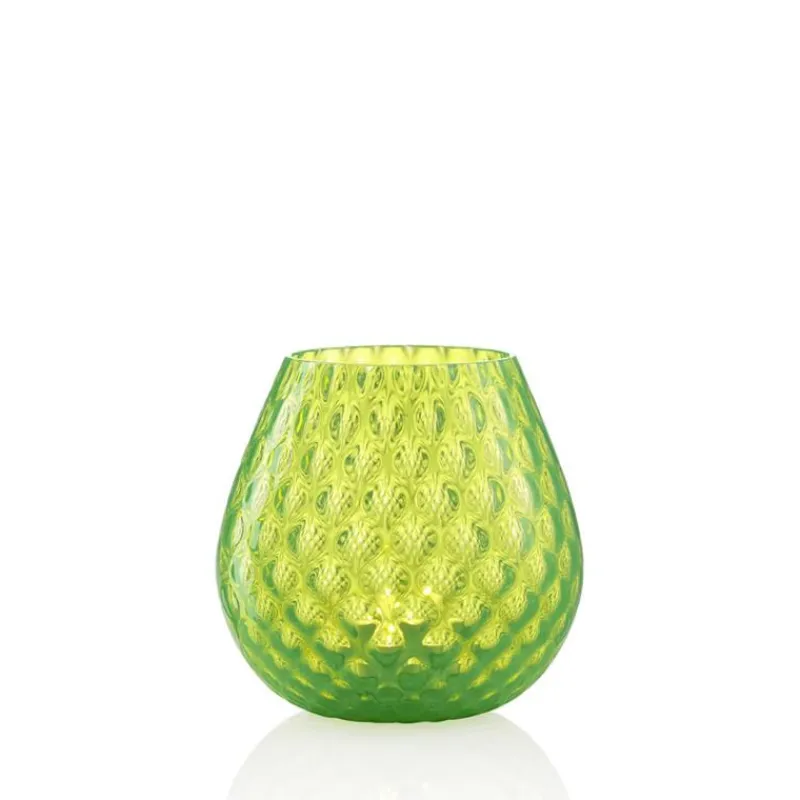 Hauchdünnes Glas und prachtvolle Farben – dafür steht die Serie Macramé von NasonMoretti. Einen einzigartigen Auftritt ermöglicht dieses limongrüne Windlicht jedem Wohnzimmer und jeder Tafel. Es ist 12 cm hoch und hat einen Durchmesser von ebenfalls 12 cm. Besonders stimmig und elegant wirken diese Meisterwerke italienischer Glasbläserkunst in einer Gruppe von mehreren Windlichtern. Selbstverständlich ist das Macramé-Windlicht auch als kleine Vase zu benutzen.