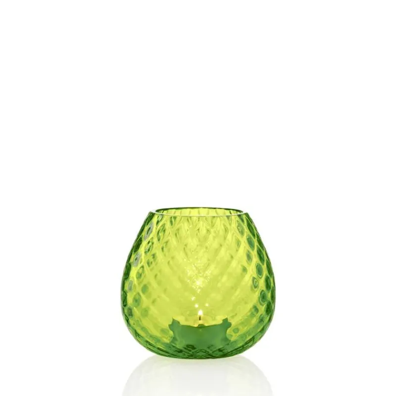Hauchdünnes Glas und prachtvolle Farben – dafür steht die Serie Macramé von NasonMoretti. Einen einzigartigen Auftritt ermöglicht dieses limongrüne Windlicht jedem Wohnzimmer und jeder Tafel. Es ist 9,5 cm hoch und hat einen Durchmesser von 10 cm. Besonders stimmig und elegant wirken diese Meisterwerke italienischer Glasbläserkunst in einer Gruppe von mehreren Windlichtern. Selbstverständlich ist das Macramé-Windlicht auch als kleine Vase zu benutzen.