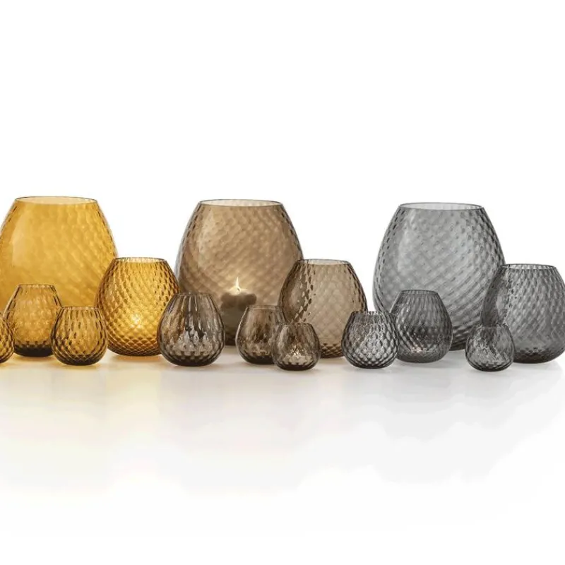 Formvollendet in ihrer Optik, einzigartig in der Textur, durchscheinend gefärbt– so sind die Macramé-Windlichter von Nasonmoretti. Faszinierend, wie glücklich es einen stimmen kann, einem Murano-Windlicht und seinen Farbreflexen im Sonnenlicht durch das Fenster zuzuschauen. Inspiriert wurden die Windlichter durch die ebenmäßig abgerundete Form klassischer Cognac-Gläser. Ihre Besonderheit ist der optische Lichteffekt, der durch den speziellen Balloton-Schliff des Glases entsteht. Die Windlichter sind in jeweils fünf unterschiedlichen Größen und vierzehn Farben erhältlich.