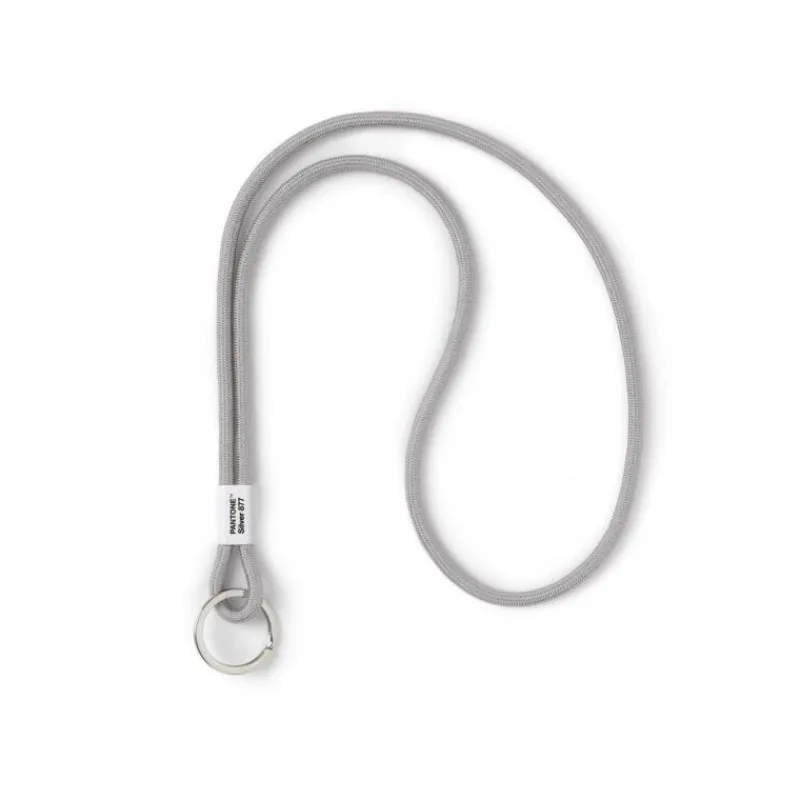 Der lange Schlüsselanhänger von Pantone erstrahlt in der Farbe Silver 877: aus widerstandsfähigem Nylon gefertigt liegt der Anhänger gut in der Hand und geht in der Tasche nicht verloren. Am metallischen Ring finden genug Schlüssel Platz, um den Schlüsselanhänger zum perfekten kleinen Alltagsbegleiter zu machen.