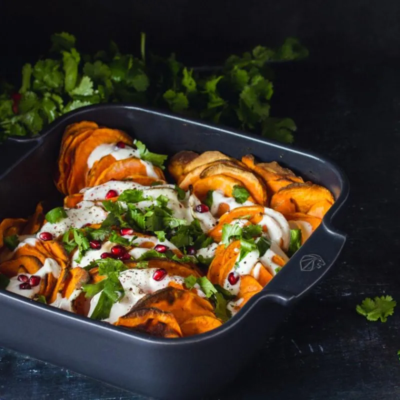 Die quadratische Auflaufform Appolia aus grauer Keramik ist ein unverzichtbarer Küchenhelfer im Alltag! Ihr hoher Rand sorgt dafür, dass die in ihr zubereiteten Speisen durch und durch gegart werden und sorgt für ein besonders großes Volumen von 2,7 Liter. Die in Frankreich hergestellte Form bietet eine enorme Wärmeträgheit, was bedeutet, dass sie die Ofenwärme für bis zu 30 Minuten speichert, nachdem die Form aus dem Ofen genommen wurde. Die schiefergraue Glasur sorgt für eine abriebfeste Oberfläche und eine einfache Reinigung, beispielsweise in der Spülmaschine. Außerdem sind alle Auflaufformen von Peugeot tiefkühl- und mikrowellengeeignet. Die quadratische Ofenform Appolia hat eine Seitenlänge von 28 cm und ist 6,5 cm hoch.