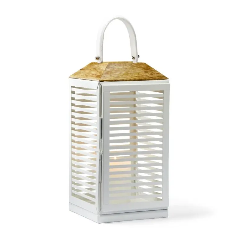 Einen Hauch von Strandatmosphäre wie in den Hamptons oder auf Sylt versprüht die Laterne List von Philippi. Sie besteht aus weißem, pulverbeschichtetem Stahl und Mangoholz und ist mit einem Griff aus weichem Büffelleder ausgestattet, mit dem sie ganz einfach getragen werden kann. Aufgrund dieser hochwertigen Materialien sollte die schöne Laterne nur im Innenbereich verwendet werden. Vorne an der Laterne lässt sich eine Tür öffnen, durch die die Kerze einfach angezündet und bei Bedarf ausgetauscht werden kann. Die Laterne ist in zwei Größen erhältlich, in der Größe L ist sie 40 cm hoch und hat ein Seitenmaß von 20 cm.