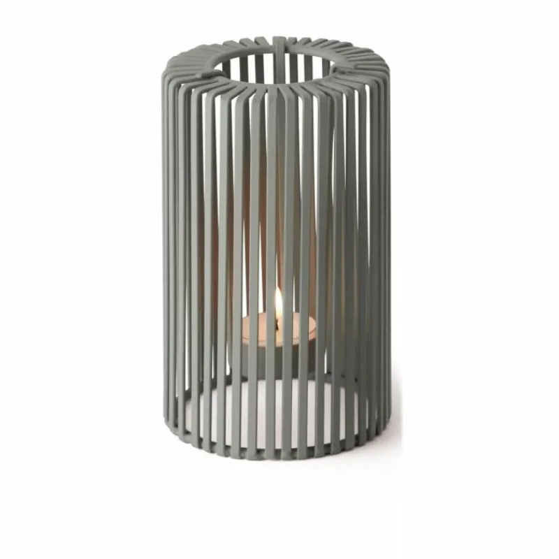 Der Teelichthalter Oslo ist auch ohne Beleuchtung ein echter Hingucker, aber erst bei Dämmerung entfaltet er seine ganze Wirkung. Sobald dann nämlich eine Kerze in seine Mitte gestellt wird, entsteht durch die dünnen Streben aus pulverbeschichtetem Stahl ein Schattenspiel, bei dem es nie langweilig wird zuzusehen. Dabei schützt der passende Glaseinsatz das Teelicht vor Wind, auch wenn der Kerzenhalter eher für den Innenbereich konzipiert ist. Der Teelichthalter Oslo ist in zwei Größen erhältlich, in der großen Variante ist er 17 cm hoch und hat einen Durchmesser von 10 cm.