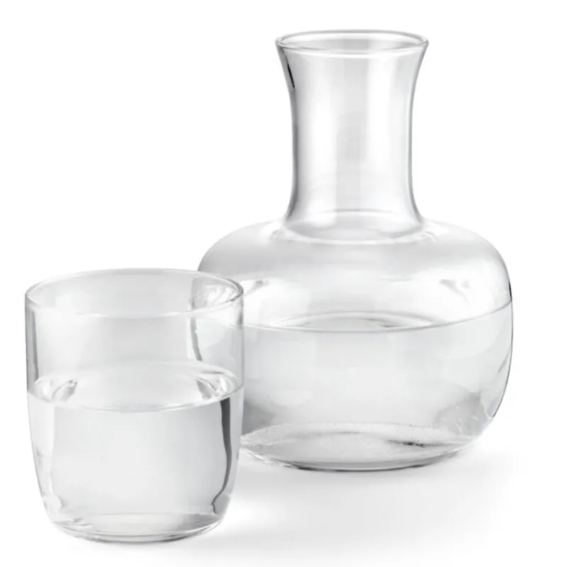 Insbesondere an heißen Sommernächten ist eine Wasserkaraffe auf dem Nachttisch ein stiller, dankenswerter Begleiter in bequemer Reichweite. Mit ihrem Fassungsvermögen von 600 ml reicht das Volumen der Karaffe aus, um nächtlichem Durst entgegenzuwirken. Im Lieferumfang enthalten ist außerdem ein passendes Glas mit einem Fassungsvermögen von 120 ml, das gleichzeitig als Deckel verwendet werden kann und den Inhalt der Karaffe vor Schmutz und lästigen Insekten schützt. Auch als Likörkaraffe wie zum Beispiel für Likör 43 ist die Karaffe mit ihrer Größe ideal geeignet. Die Wasserkaraffe Sweet Dream ist 15 cm hoch und hat einen Durchmesser von 11 cm. Sie besteht aus mundgeblasenem Glas.