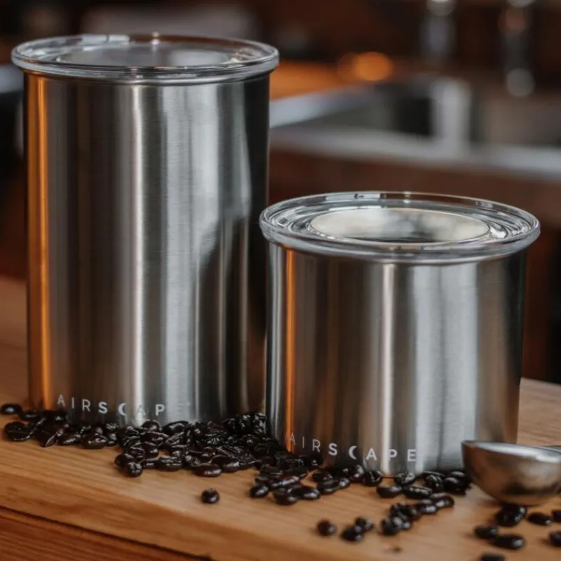 Vorratsbehälter für Lebensmittel sind in der Regel luftdicht, was bedeutet, dass sie nicht nur den Inhalt in dem Behältern einschließen, sondern auch Luft. Das Unternehmen Planetary Design hat einen Vorratsbehälter entwickelt – den Airscape – der die Luft und den Sauerstoff so gut wie vollständig aus dem Behälter verdrängt. Dadurch verlängert sich die Lebensdauer nicht nur von Kaffee oder Tee, sondern auch für alle anderen Trockenwaren wie Gewürze, Mehl, Zucker, Nüsse oder Tiernahrung. Der Airscape Edelstahl-Aromabehälter besteht aus hochwertigem Qualitätsstahl, einem nachhaltigen und schicken Glasdeckel und dem inneren BPA-freien Airscape-Deckel und ist somit die perfekte Aufbewahrungslösung für die Küche. Der Behälter an sich kann in der Spülmaschine gereinigt werden, für eine längere Lebensdauer wird aber eine Handwäsche empfohlen. In der kleinen Variante ist der Aromabehälter 14 cm hoch und hat einen Innendurchmesser von 12,1 cm. Insgesamt passen 250 Gramm ganze Kaffeebohnen hinein.