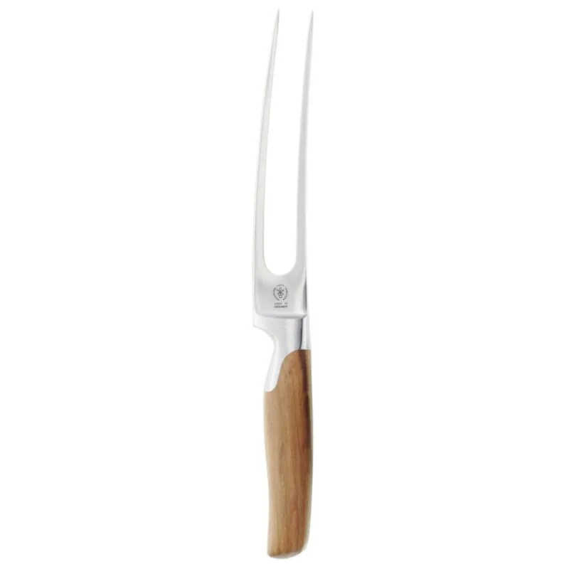 Geschmiedet wird die Fleischgabel der Sarah Wiener Serie in einem neunstufigen Verfahren aus einem Stück Molybdän-Vanadium-Stahl. Dieser Stahlist sowohl besonders hart und rostbeständig als auch geschmeidig und belastbar. Durch separaten Vor- und Feinschliff wird die Oberfläche extrem glatt und die Poren des Stahls schließen sich. Der Griff aus Zwetschgenholz macht die Fleischgabel zum Handschmeichler in Form und Material. Der Griff sind von Hand beigeschliffen und geölt. Die Fleischgabel mit Griff aus Zwetschgenholz hat eine Gabellänge von 15 cm und ist ideal zum Wenden und Fixieren vom Braten beim Schneiden geeignet.