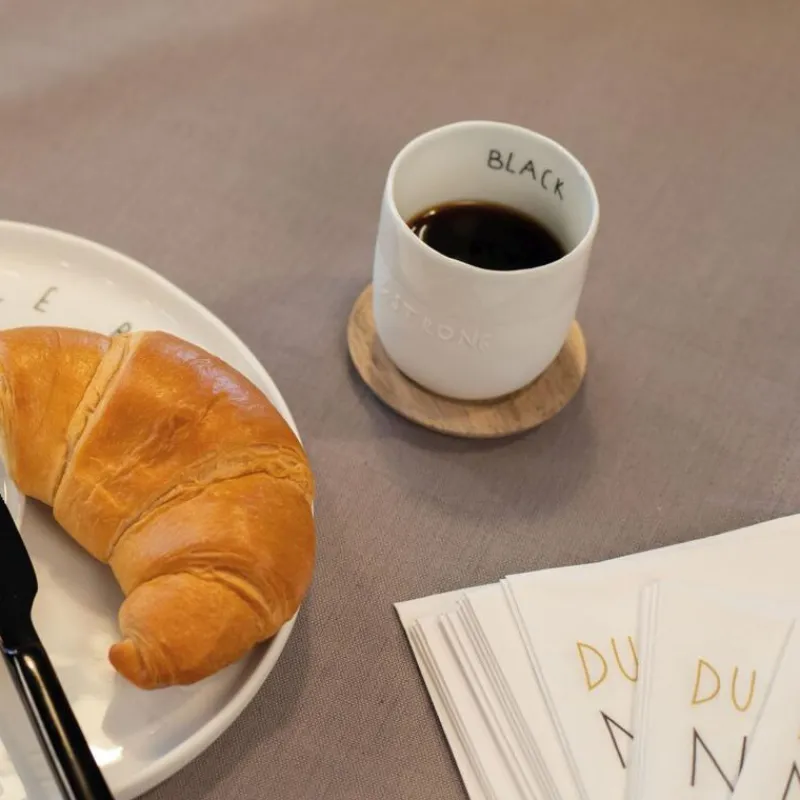Die Becher von Räder versprühen schon am Morgen gute Laune. Der kleine Becher aus Porzellan, der innen komplett und außen am oberen Rand glasiert ist, sorgt mit seinem netten Spruch für ein Lächeln auf den Lippen oder ermöglicht es allen Espressoliebhabern einen Hinweis auf den Inhalt ihres Bechers zu geben. Besonders raffiniert: Der Spruch „Black & Strong “ ist auf den Innen- und Außenteil des Bechers aufgeteilt und beim Austrinken des Getränks ist auf dem Boden des Bechers noch ein geprägtes &-Zeichen zu entdecken. Komplettiert wird das Set von einem kleinen Tellerchen aus unbehandeltem Akazienholz. Der Becher hat ein Volumen von 100 ml, ist 6 cm hoch und hat einen Durchmesser von 5,5 cm.