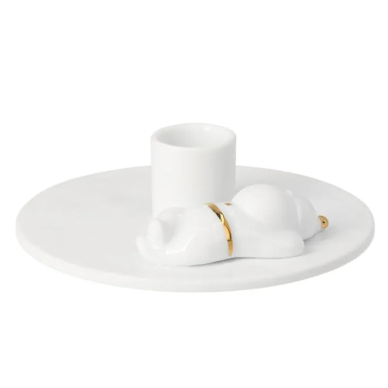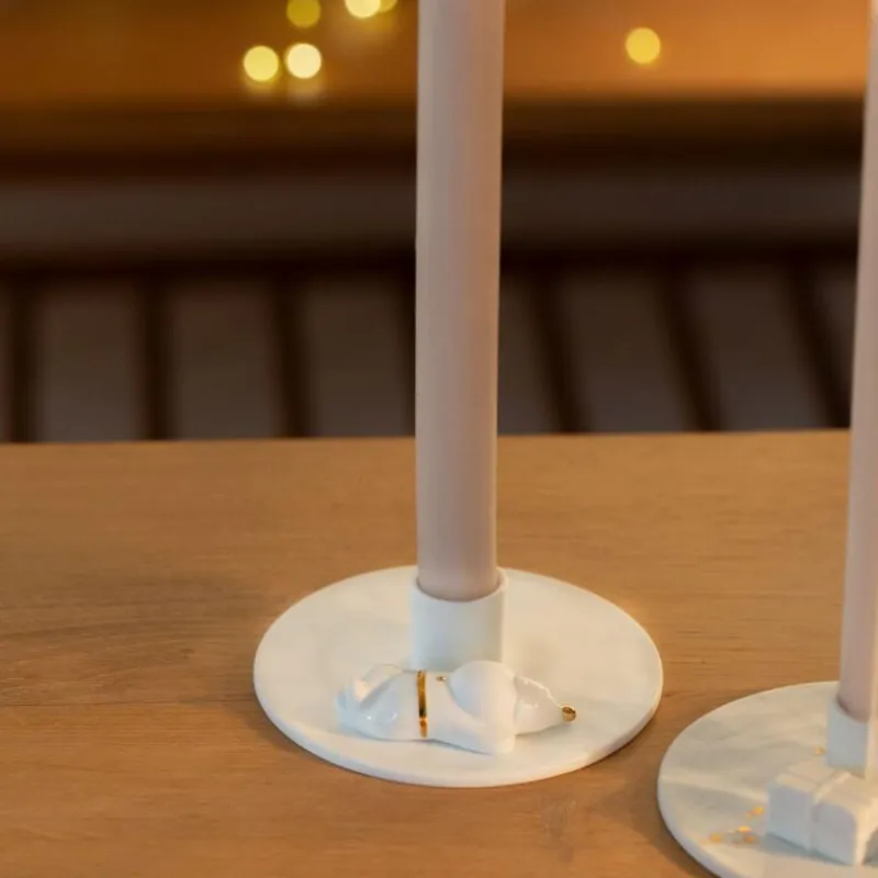Nach getaner Arbeit hat sich der kleine Weihnachtsmann mit goldglänzendem Gürtel wirklich eine Pause verdient und hat es sich nebem dem Kerzenhalter bequem gemacht. Der Kerzenhalter aus schneeweißem Porzellan ist ein absoluter Hingucker auf jeder weihnachtlich geschmückten Tafel und ist geeignet für eine handelsübliche Stabkerze. Nicht nur für die eigene Dekoration, sondern auch als festliches Geschenk eignet sich der Kerzenhalter hervorragend. Er ist 3,4 cm hoch und hat einen Durchmesser von 11,5 cm.