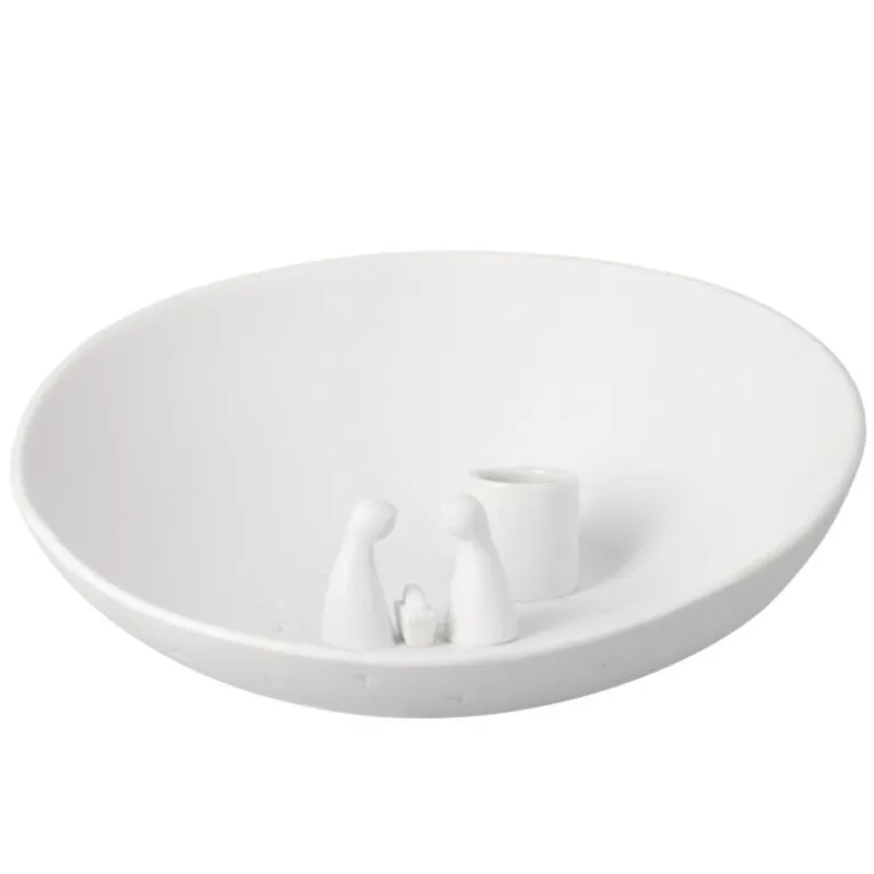 Ohne die Geburt des Christkindes gäbe es kein Weihnachtsfest, so gehört für viele Menschen eine klassische Krippenszene zur unverzichtbaren Dekoration am heiligen Abend. Die Kerzenschale von Räder ist eine minimalistische, moderne Variante, die aus weißem, unglasiertem Porzellan besteht. Neben Maria, Josef und dem Jesuskind lässt sich eine Stabkerze einstecken (nicht im Lieferumfang enthalten), die dann wie der Weihnachtsstern über der kleinen Familie scheint. Ein Reliefdekor an der Außenseite der Schale rundet die Szenerie ab. In der großen Variante hat die Kerzenschale einen Durchmesser von 19 cm und ist 7 cm hoch.