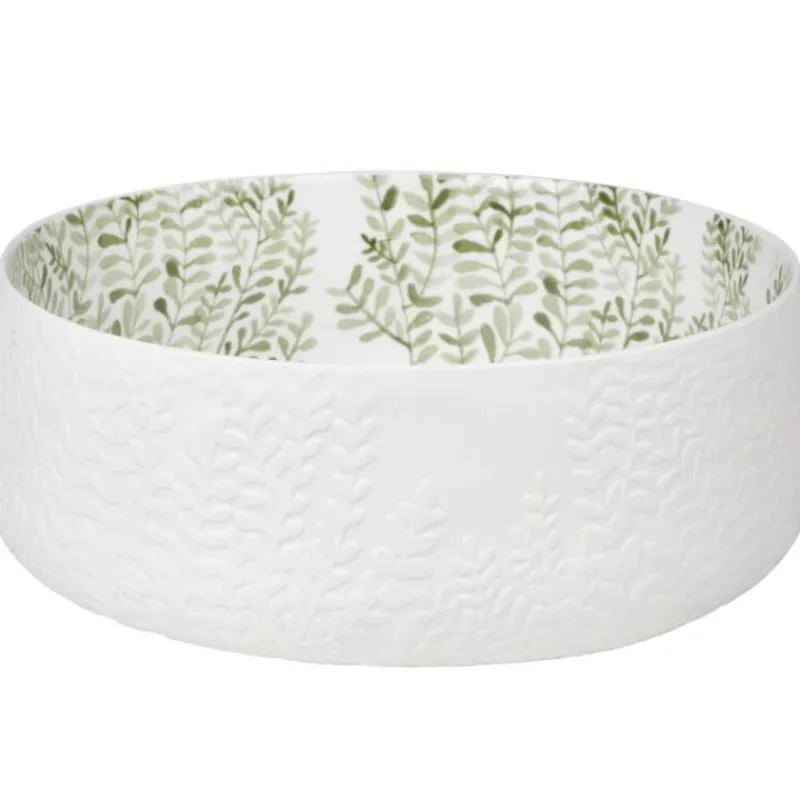 Die Schale aus der Mix & Match Kollektion begeistert mit ihrem formschönen Rankenmotiv. Die Schale, die multifunktional einsetzbar ist, weist auf der unglasierten Außenseite das Dekor in Form eines Reliefs auf. Innen ist die glasierte Oberfläche mit der Decal Wasserschiebefolientechnik versehen. Das in zartem Grün gehaltene Rankenmotiv kommt dadurch besonders schön zur Geltung. Ob als Salatschale, Obstschale oder dekorativer Hingucker – die 10,5 cm hohe und 28 cm im Durchmesser große Mix und Match Schale von Räder ist besonders variabel einsetzbar und überzeugt auf ganzer Linie.