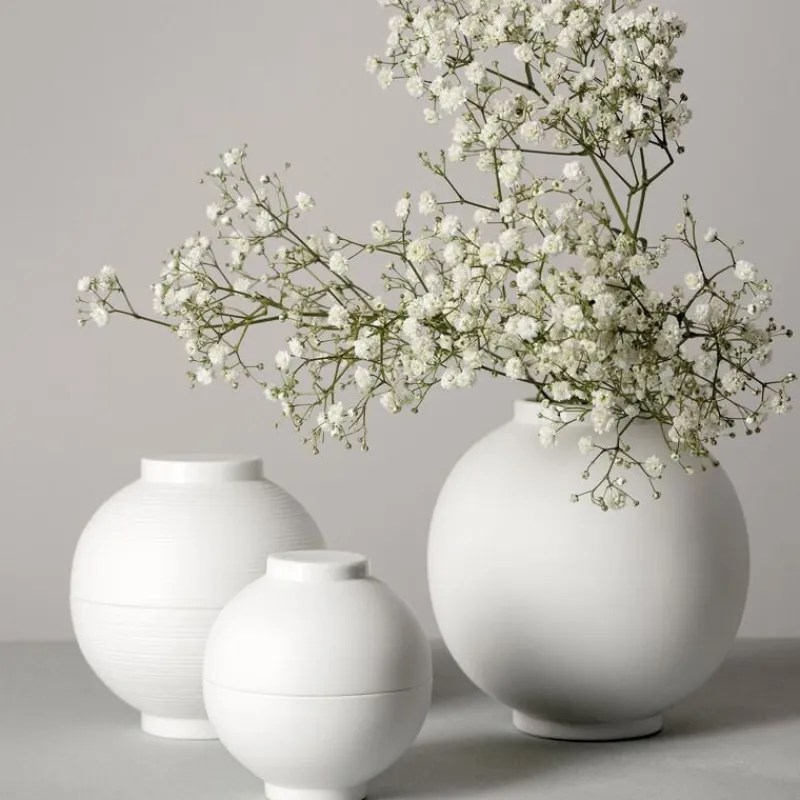 Die Aufbewahrungsdose Lille von Trevoly vereint Funktionalität mit minimalistischer Ästhetik, welche sich durch die klare Formensprache ausdrückt. Ihr schlichtes und zeitlos modernes Design sowie das symmetrische Zusammenspiel aus Ober- und Unterteil macht sie zur idealen Aufbewahrungsmöglichkeit. Ein besonderes Detail: beide Teile der Dose können auf dem Sockel abgestellt und als formschöne Schale zum Servieren von Süßgkeiten oder kleinen Snacks genutzt werden. Die kleine Dose Lille besteht aus unglasiertem, mattem Porzellan, ist 8,5 cm hoch und hat einen Durchmesser von 7 cm.