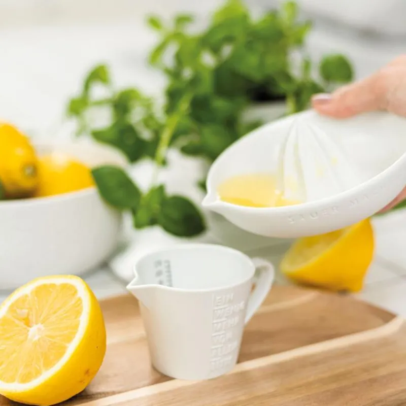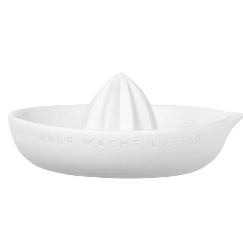 Entdecken Sie die exquisite Zitruspresse aus dem renommierten Hause Räder, die durch ihre stilvolle Gestaltung einen Hauch von Eleganz in Ihre Küche bringt. Hergestellt aus hochwertigem Porzellan und teils glasiert, vereint dieses Küchenaccessoire Funktionalität mit ästhetischem Design. Mit einem Durchmesser von 13,6 cm und einer Höhe von 6,4 cm bietet die Zitruspresse ausreichend Platz für das Auspressen von Zitrusfrüchten. Besonders charmant ist der eingravierte Spruch „Sauer macht lustig“, der nicht nur gute Laune verbreitet, sondern auch ein Blickfang auf jedem Tisch ist. Diese Zitruspresse ist ideal für Genießer und verleiht jedem Getränk das gewisse Etwas.