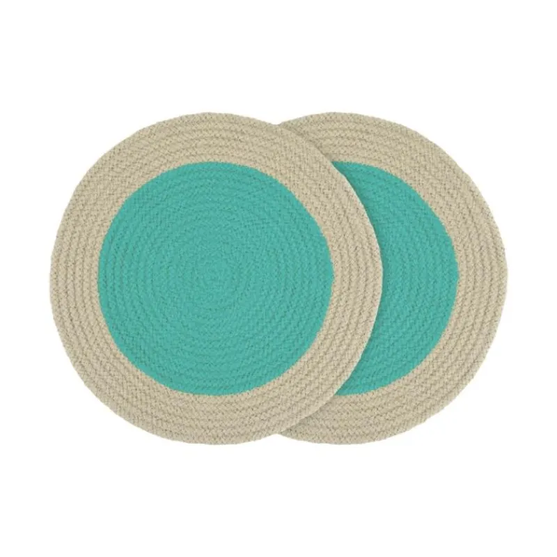 Die runden Tischsets sind im 2er Set erhältlich und bringen Farbe auf den Tisch oder die Kommode. Die Sets bestehen aus Baumwollseil und sind in verschiedenen Farbvariationen zu haben. Sie haben einen Durchmesser von 38 cm und sind mit einem feuchten Tuch abwischbar.