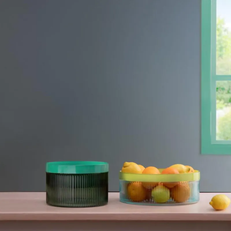 Die Glasschale Groove sorgt mit modern geriffeltem Glas und einer frischen Farbkombination für einen farbenfrohen Akzent in Küche oder Esszimmer. Je nach Geschmack kann sie mit Obst, Gemüse onder Snacks gefüllt werden, so wird die Schale zum ständigen Deko-Begleiter. In der Größe S ist die Schale Groove 13 cm hoch und hat einen Durchmesser von 20 cm.