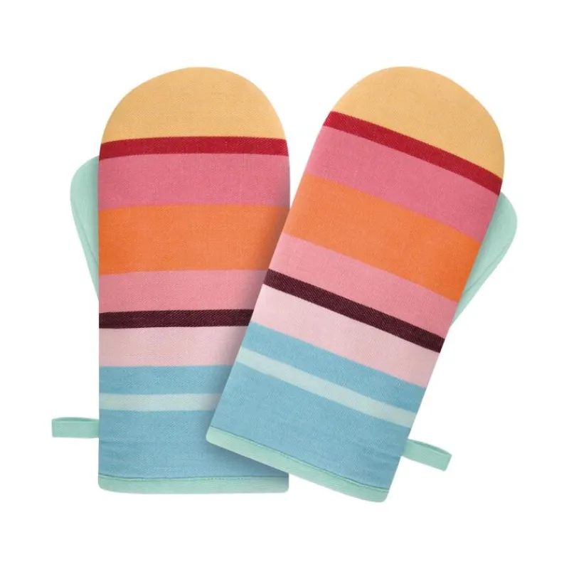 In vielen Küchen müssen Topfhandschuhe möglichst schlicht sein, damit sie nicht auffallen – das Ofenhandschuh-Set von Remember müssen Sie aber nicht verstecken! Die fröhlichen Farben werten Ihre Küche auf und fördern sogar den Spaß an der Hausarbeit. Auch als kleines Mitbringsel oder Gastgeschenk sind die Handschuhe bestens geeignet. Im Set enthalten sind zwei Ofenhandschuhe mit unterschiedlichen Designs, die außen 100 % Baumwolle bestehen. Das Innenfutter besteht aus Polyester. Sie sind bis 40 Grad waschbar und haben die Maße 14 x 29 cm.