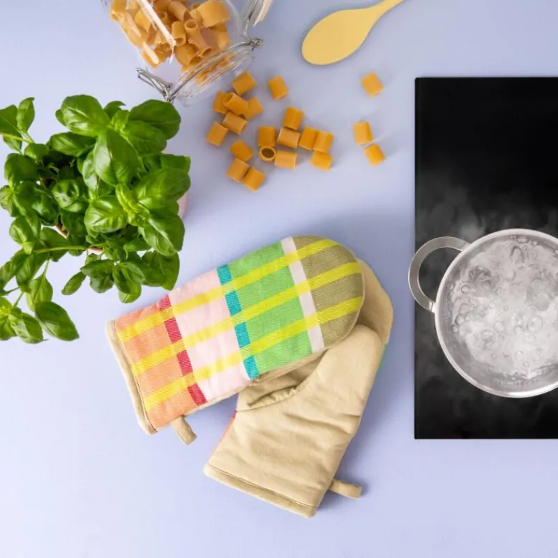In vielen Küchen müssen Topfhandschuhe möglichst schlicht sein, damit sie nicht auffallen – das Ofenhandschuh-Set von Remember müssen Sie aber nicht verstecken! Die fröhlichen Farben werten Ihre Küche auf und fördern sogar den Spaß an der Hausarbeit. Auch als kleines Mitbringsel oder Gastgeschenk sind die Handschuhe bestens geeignet. Im Set enthalten sind zwei Ofenhandschuhe mit unterschiedlichen Designs, die außen 100 % Baumwolle bestehen. Das Innenfutter besteht aus Polyester. Sie sind bis 40 Grad waschbar und haben die Maße 14 x 29 cm.