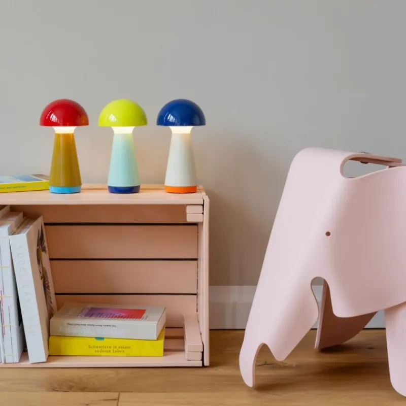 Die mobile LED-Tischleuchte Bobbi schafft mit ihrem lustigen Pilzkopf eine farbenfrohe Retro-Atmosphäre und überzeugt mich gut durchdachten Funktionen. Mit nur einer Akkuladung spendet Bobbi bis zu 46 Stunden gemütliches, warmweißes Licht (3000 Kelvin, 60 Lumen) und ist zudem in drei Stufen über den Touch-Sensor am Leuchtenkopf dimmbar. Die Aufladung erfolgt über den USB-C-Port, eine Ladekabel ist im Lieferumfang enthalten. Bis die Leuchte komplett aufgeladen ist, dauert es etwa fünf Stunden, insgesamt hat Bob eine Lebensdauer von etwa 20.000 Stunden. Eine weitere Besonderheit ist das spritzwassergeschützte Gehäuse der Tischleuchte, so kann sie sowohl im Innen- als auch im Außenbereich eingesetzt werden. Die Tischleuchte Bobbi besteht aus Kunststoff, ist 18 cm hoch und hat einen Durchmesser von 9,5 cm.