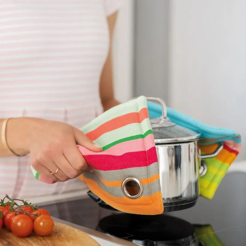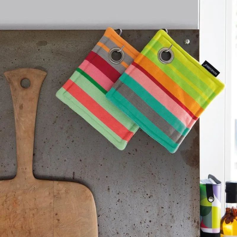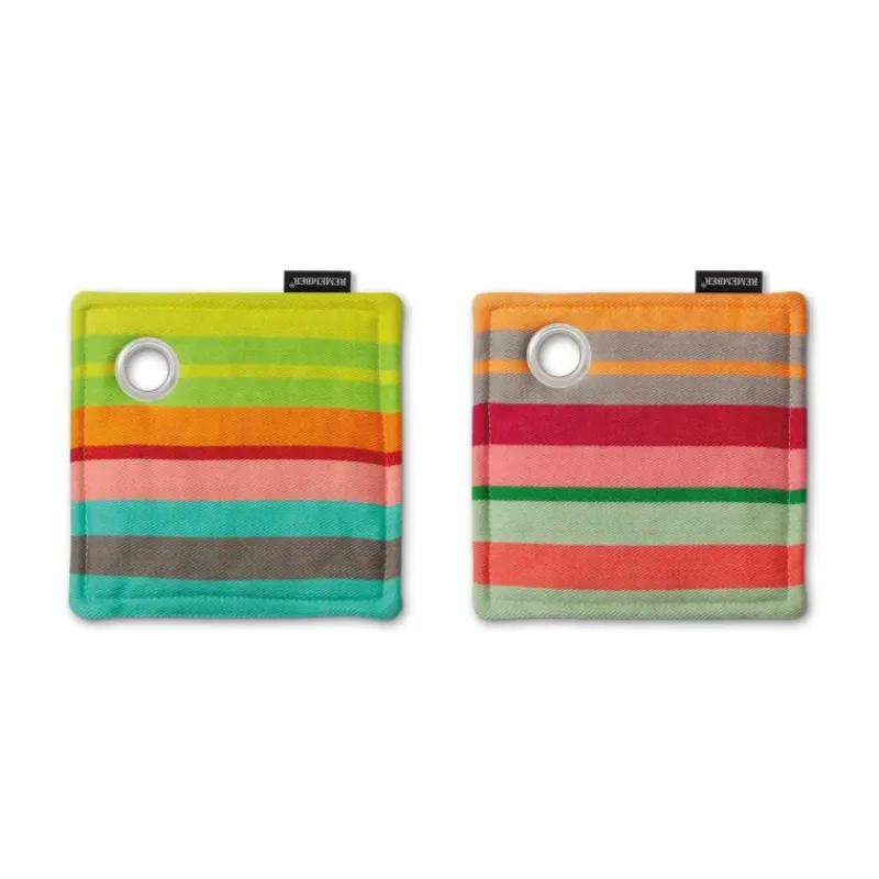 In vielen Küchen müssen Topflappen möglichst schlicht sein, damit sie nicht auffallen – das Topflappen-Set von Remember müssen Sie aber nicht verstecken! Die fröhlichen Farben werten Ihre Küche auf und fördern sogar den Spaß an der Hausarbeit. Auch als kleines Mitbringsel oder Gastgeschenk sind die Topflappen bestens geeignet. Im Set enthalten sind zwei Topflappen mit unterschiedlichen Designs, die aus 100 % Baumwolle bestehen. Sie sind bis 40 Grad waschbar und haben die Maße 18,5 x 18,5 cm.