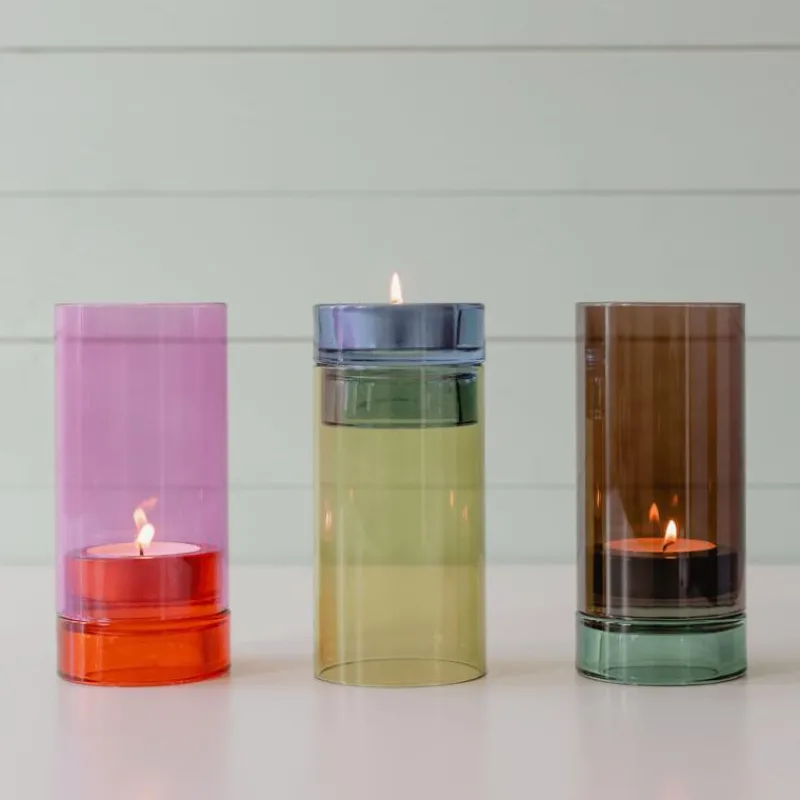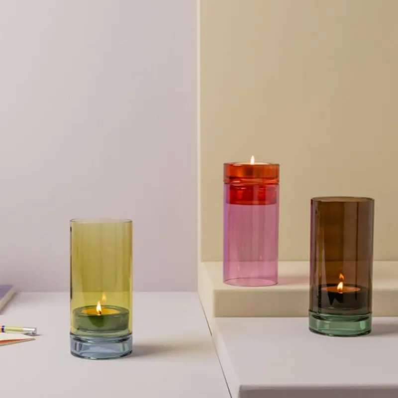 Das mundgeblasene Windlicht Lys im Color-Blocking-Design ist eine einfache und effektive Möglichkeit, einem Raum einen bunten Farbtupfer zu geben. Dieses wunderschöne Windlicht präsentiert sich multifunktional, denn das Teelicht kann innerhalb des Zylinders oder – wird das Windlicht umgedreht – oben auf dem Sockel platziert werden. Der Zylinder und Sockel des Windlichts bestehen aus Glas, das Glas des Zylinders ist hitzebeständig. Das Windlicht wird von Hand gefertigt und ist somit immer ein Unikat, welches leichte Unterschiede in Form und Farbe haben kann. Es ist 19,3 cm hoch und hat einen Durchmesser von 9 cm.