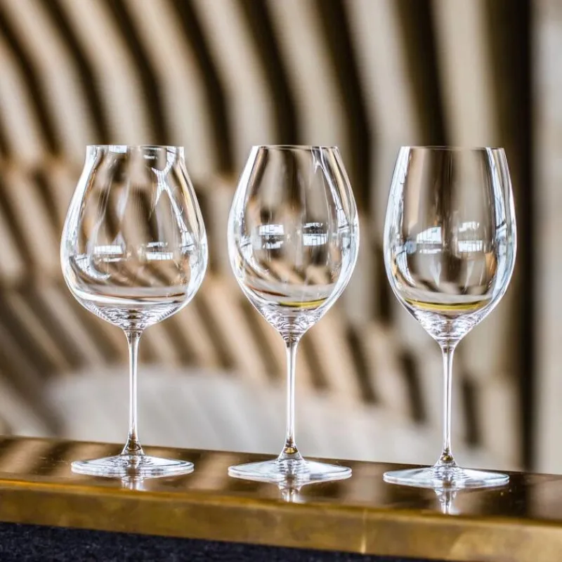 Dieses Set enthält 3 Stück Riedel Veritas-Rotweigläser: Merlot/Cabernet, New World Pinot Noir und Old World Syrah. Das Merlot/Cabernet Glas präsentiert die majestätisch strukturierten Rotweine in all ihrer Komplexität und Finesse. Die Kelchform des New World Pinot Noir Glases gibt dem Bouquet die Möglichkeit, sich voll zu entfalten, während die leicht ausgestellte Oberlippe die Fruchtaromen maximiert, indem sie einen präzisen Fluss auf den vorderen Gaumen richtet. Das Old World Syrah Glas wurde entwickelt, um die klassischen Aromen von Toast und schwarzen Oliven zu liefern, die typisch für Weine aus Syrah-Trauben sind. Das schlichte, maschinell hergestellte Rotwein-Verkostungsset der leichtgewichtigen Glaskollektion Riedel Veritas sollte zur Grundausstattung jedes anspruchsvollen Rotweinliebhabers gehören. Alle Riedel-Gläser sind spülmaschinengeeignet.