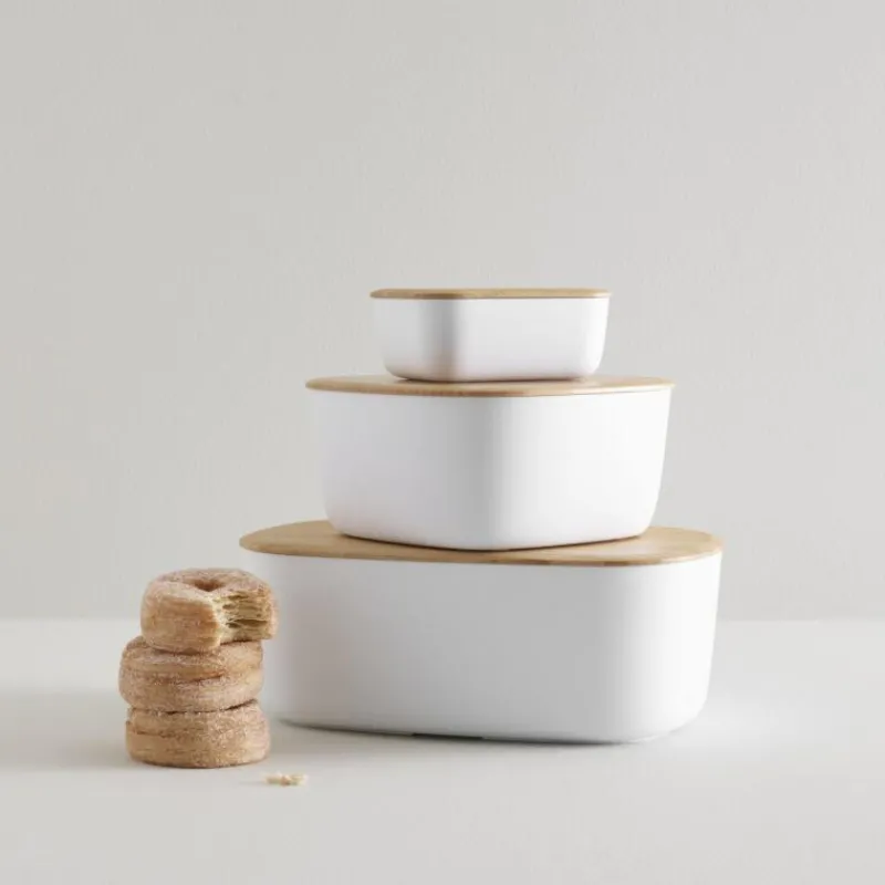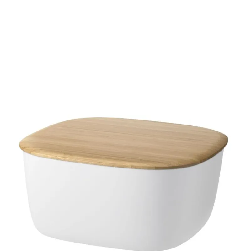 Der Box-It ist ein eleganter Brotkasten, der perfekt in praktisch jede Küche passt. Im Brotkasten aus PBT-Kunststoff mit einem Deckel aus Bambus bleibt Brot länger frisch. Der Deckel dient gleichzeitig als Schneidbrett, was gerade in kleinen Küchen viel Platz spart. Der Kasten ist 23 cm lang und 23 cm breit. Er ist ideal für kleine Haushalte geeignet, die nur wenig frisches Brot aufbewahren möchten.