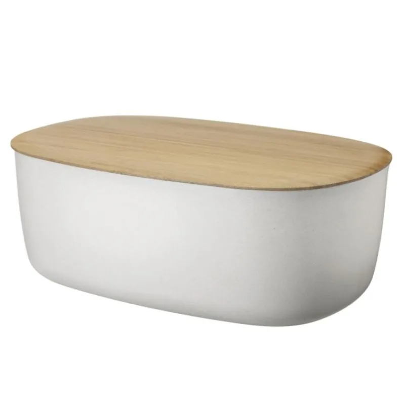 Der Box-It ist ein eleganter Brotkasten, der perfekt in praktisch jede Küche passt. Im Brotkasten aus PBT-Kunststoff mit einem Deckel aus Bambus bleibt Brot länger frisch. Der Deckel dient gleichzeitig als Schneidbrett, was gerade in kleinen Küchen viel Platz spart. Der Kasten ist 34,5 cm lang und 22,5 cm breit. Außerdem ist er in den Farben Grau und Schwarz erhältlich.