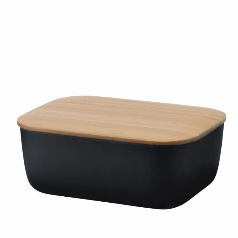 Die Box-It Butterdose ziert jeden Frühstückstisch. Verwenden Sie die Box-It Butterdose für Ihre Lieblingsbutter oder -margarine. Sie ist für die meisten Packungsgrößen geeignet. Sie passt zum beliebten Brotkasten von Rig-Tig, der mit vielen Designpreisen ausgezeichnet wurde. Die Butterdose ist aus PBT-Kunststoff hergestellt und hat einen Bambusdeckel. Sie ist 15,5 cm lang, 11,5 cm breit und 6 cm hoch.