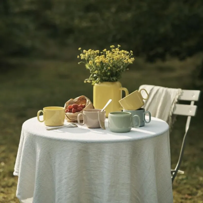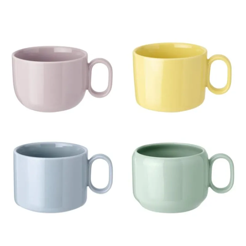 Das vierteilige Mix’N’Match Tassenset vin Rig-Tig ist für alle geeignet, die kleine Farbtupfer in der Küche oder auf dem Esstisch lieben. Die vier Tassen haben nicht nur unterschiedliche Pastellfarben, sondern auch verschiedene Formen. So kann jeder aus seiner ganz persönlichen Lieblingstasse trinken. Die Becher sind innen und außen glasiert und somit leicht zu reinigen. Sie bestehen aus Steingut und sind 7 cm hoch.