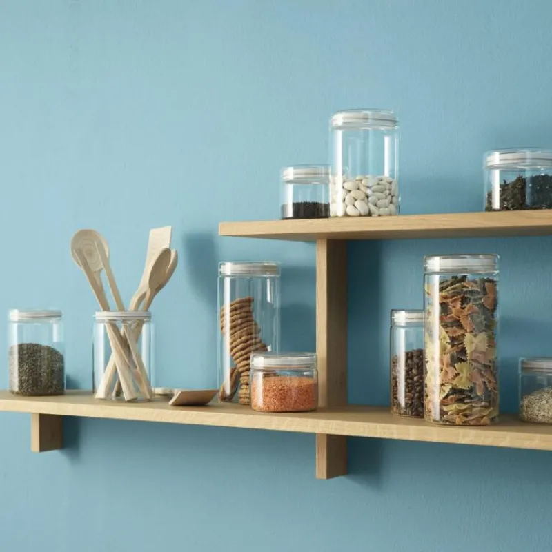 Die Store-It Aufbewahrungsdosen wurden für die Aufbewahrung von z. B.Haferflocken, Nudeln und Nüssen in der Küche entworfen. Das minimalistische, cleane Design in Zylinderform nimmt in der Küche wenig Platz weg und mit Hilfe des transparenten Glases ermöglicht es auf einen Blick den Inhalt zu erkennen. Der Silikonring sorgt dafür, dass der Deckel das Aufbewahrungsglas dicht verschließt und es so keine Gerüche abgibt oder von anderen Lebensmitteln annimmt. Die Gläser können auch im Kühlschrank zur Aufbewahrung von verschiedensten Lebensmitteln verwendet werden. Das Aufbewahrungsglas ist 15 cm hoch, hat einen Durchmesser von 10 cm und sollte nur von Hand gereinigt werden.