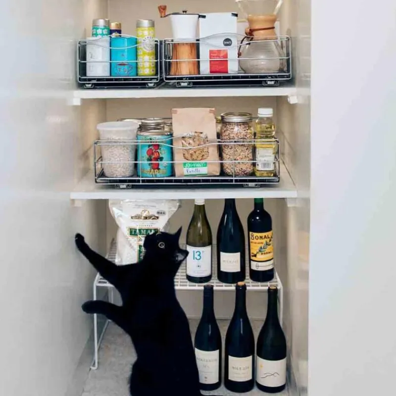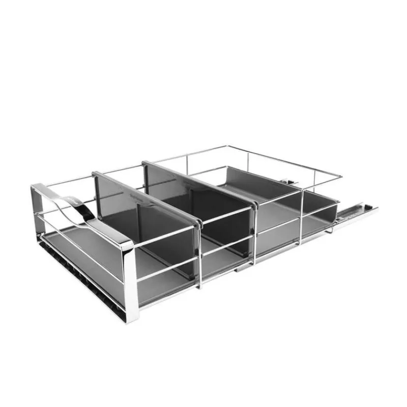 Der ausziehbare Schrank-Organisator von Simplehuman reduziert Unordnung in Schränken und ermöglicht es, schwer zugängliche Küchenschrankräume zu nutzen. Sein Rahmen besteht aus schwerem Stahl mit vorjustierten Kugellagerschienen, der bis zu 9 kg Gewicht aufnehmen kann. Unter dem Organisator liegt ein strapazierfähiger Tropfenschutz, der die Schränke vor Krümeln und ausgelaufenen Resten. Der Schrank-Organisator kann ganz einfach installiert und dank der Stahlgriffe schnell aus dem Schrank gezogen werden. Er ist 50,8 cm lang und 35 cm breit und besteht poliertem Edelstahl.