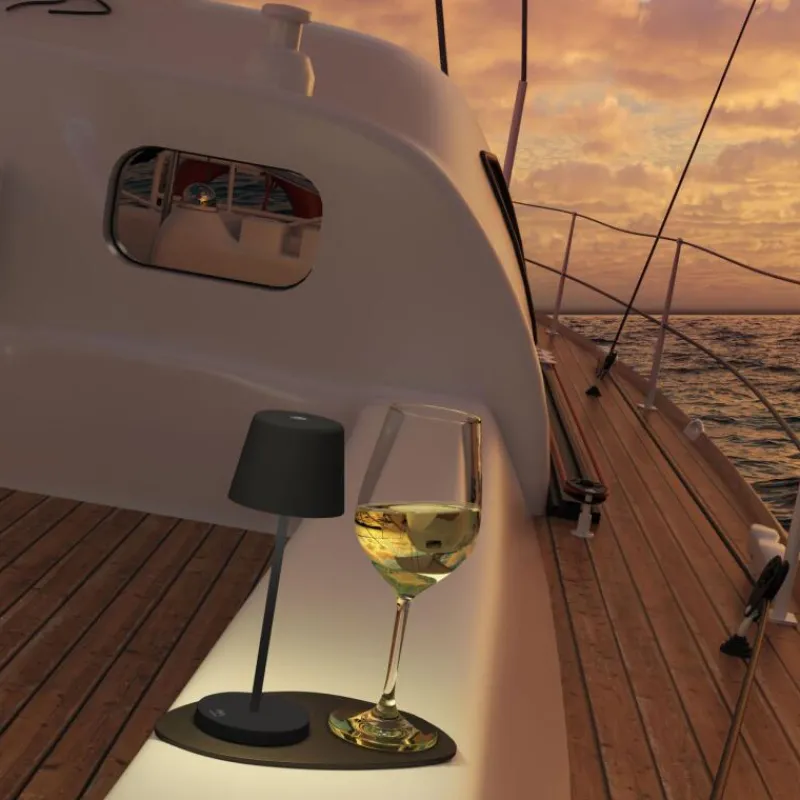 Die handliche Akku-Tischleuchte Monaco überzeugt mit vielseitigen Funktionen und einem modernen Aussehen. Dank magnetiischem Fuß kann die Leuchte mühelos auf magnetischen oder metallischen Oberflächen platziert werden, als Alternative wird ein innovatives Metall-Nano-Gel-Platzset mitgeliefert, auf dem die Leuchte sicher hält. So kann sie nicht wackeln oder umfallen: ideal für Reisen, Camping oder im Garten. Damit auch Wasser der Tischleuchte nichts anhaben kann, ist sie IP65-klassifiziert spritzwassergeschützt. Mit zwei warmen Lichtfarben und dem stufenlosen Touch-Dimmer sorgt Monaco für ein angenehmes Ambiente. Sie besteht aus beschichtetem Aluminium, ist 21 cm hoch und hat einen Durchmesser von 7,5 cm. Aufgeladen wird Monaco mit einem mitgelieferten Kabel innerhalb von 2,5 Stunden, sie ist dann bis zu sieben Stunden betriebsbereit.