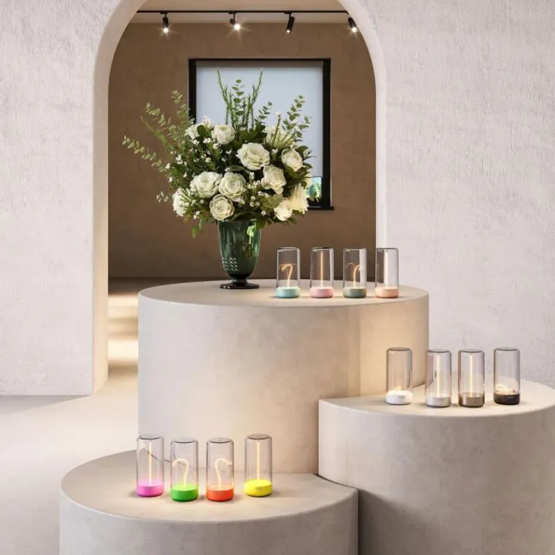 Hier hängt das Licht am seidenen Faden: das LED-Filament der Tischleuchte Pulse von Sompex scheint wie von selbst in der Luft zu schweben. Erst bei genauerer Betrachtung erkennt man, dass die Stahlkugel am Ende des Lichtstrahls durch einen Magneten an der Oberseite der Leuchte gehalten wird. Durch ein leichtes Rütteln kann das Filament gelöst und in der Leuchte bewegt werden, durch Umdrehen der Leuchte wird es wieder fixiert. Dank IP54-spritzwassergeschütztem Gehäuse kann die Leuchte Pulse sowohl im Wohn- als auch im Außenbereich verwendet werden, als stilvolles Wohnaccessoire wirkt sie dabei beisonders als Dekoleuchte auf dem Sideboard oder als Schreibtisch-Accessoire. Pulse besteht aus transparentem Polykabonat und Kunststoff, die Leuchte wird per beiliegendem USB-C-Kabel in 2,5 Stunden aufgeladen. Anschließend kann über den Touc-Sensor an der Vorderseite der Leuchte zwischen drei Lichteinstellungen gewählt werden: 15% Helligkeit (weiches Licht für ein gemütliches Ambiente), 100% Helligkeit sowie dem namensgebenden, pulsierenden Licht-Modus. Die Akku-Tischleuchte Pulse ist 14,5 cm hoch und hat einen Durchmesser von 7 cm.