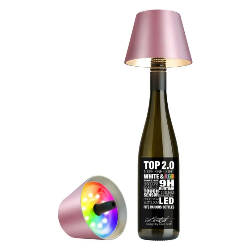 RGBW-Akku-Flaschenleuchte Top 2.0 Pink Metallic von Sompex