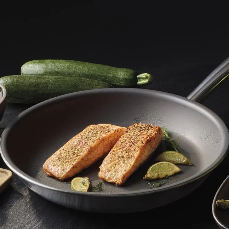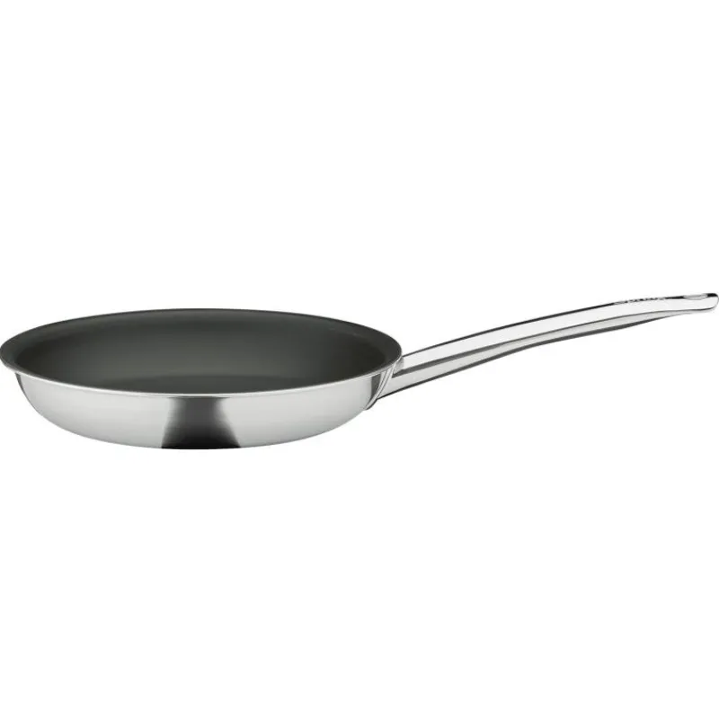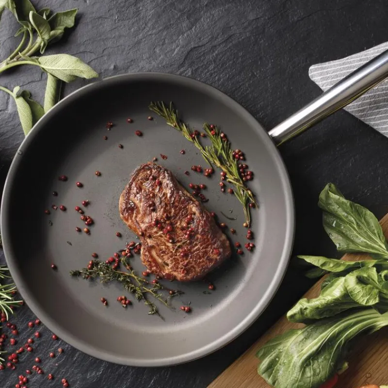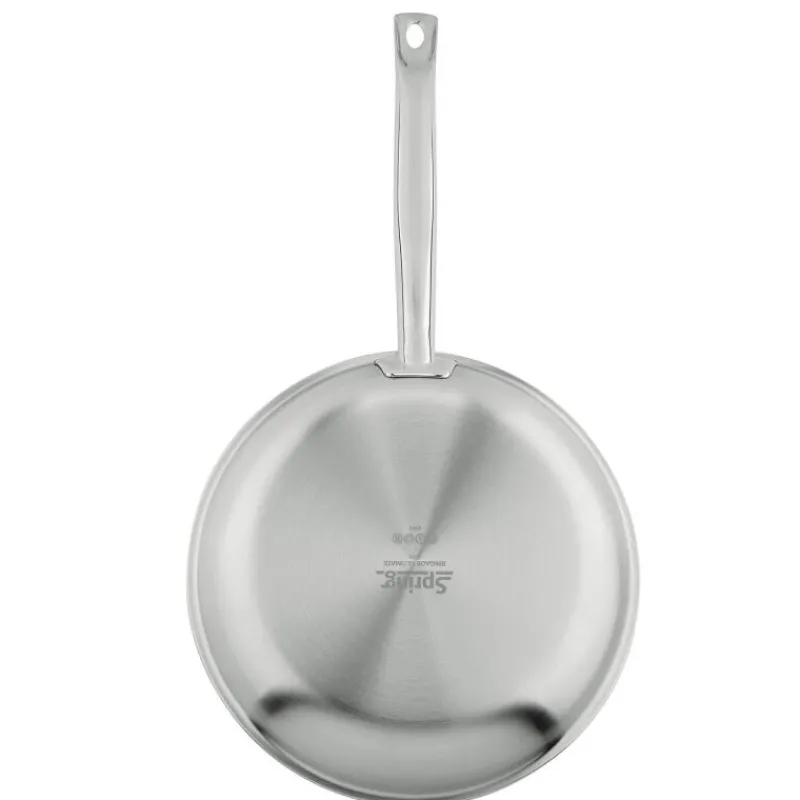 Mit der Serie Brigade Ultimate bleibt Spring seinem Motto treu, professionelle Gastronomie-Qualität auch für Zuhause anzubieten. Eine der vielen herausragenden Eigenschaften der Pfannen dieser Kollektion ist das hochwertige Mehrschichtmaterial, welches aus zwei Edelstahlschichten und einem dreischichtigen Aluminiumkern besteht und eine optimale Wärmeverteilung bietet. Zudem ist ihre Oberfläche mit einer innovativen Beschichtung versehen, welche durch die Zugabe von nur einer kleinen Menge Speiseöl einen natürlichen Antihaft-Effekt bietet. Außerdem ist die Beschichtung extrem widerstandsfähig, hygienisch und pflegeleicht, da die Pfanne in der Spülmaschine gereinigt werden kann. Schonendes Garen als auch krosses Anbraten sind so garantiert, auch die Verwendung von Kochutensilien aus Metall stellt kein Problem dar. Alle Pfannen der Serie Brigade Ultimate sind für sämtliche Herdarten inklusive Induktion geeignet und backofenfest. Die Bratpfanne hat einen Durchmesser von 24 cm und ist 4 cm hoch.