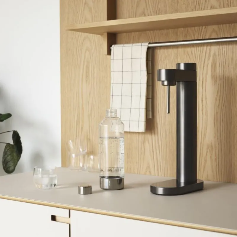 Stylisch, kostengünstig und rückenschonend: Mit dem Brus Wassersprudler von Stelton verwandeln Sie herkömmliches Leitungswasser im Handumdrehen in erfrischendes Sprudelwasser und entscheiden dabei selbst, wie stark das Wasser sprudeln soll. Sie schonen durch das wegfallende Kistenschleppen aber nicht nur Ihren Rücken, sondern auch Ihren Geldbeutel und die Umwelt, indem Sie die wiederverwendbaren Flaschen statt unnötiger Plastikflaschen verwenden. Das moderne und minimalistische Design des Wassersprudlers passt in jedes Interior und wird sogar zu einem echten Blickfang in Ihrer Küche. Im Lieferumfang ist eine Flasche enthalten, weitere Flaschen lassen sich einzeln nachkaufen. Der Wassersprudler von Stelton kommt jeder handelsüblichen CO2-Kartusche aus. Der Wassersprudler besteht aus Edelstahl und Kunststoff, er ist 42 cm hoch und 22 cm tief.