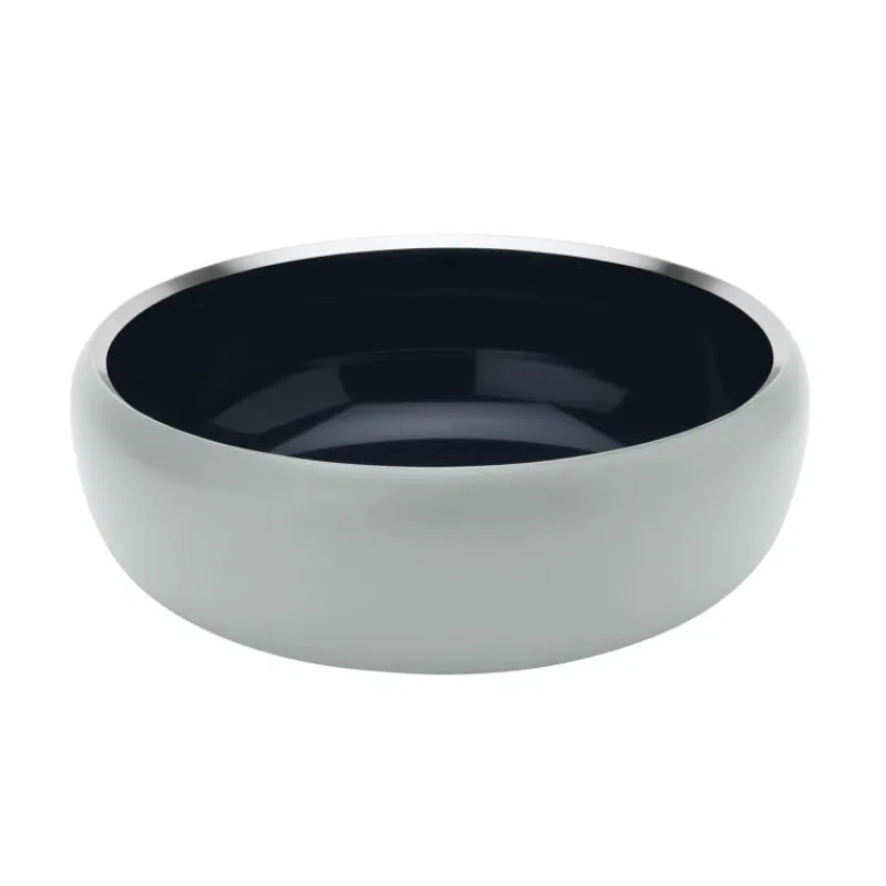 Die Serie Ora wurde vom italienischen Designerduo Daniel Debiasi und Federico Sandri entworfen. Die verschieden große Schalen der Serie sollen nicht nur praktische Begleiter im Alltag, sondern auch skulpturale Designobjekte darstellen, die ein Leben lang begleiten. Gekennzeichnet wird die Serie durch den Kontrast zwischen dem funktionellen Edelstahl und den weichen, organischen Formen der Schalen. Die Außenseite der Ora Schale Mitternachtsblau 30 cm ist in der Farbe Neo Mint matt beschichtet, auf der mitternachtsblauen, glänzenden Innenseite entstehen raffinierte Lichtreflexe. Die Schale ist 10 cm hoch und hat einen Durchmesser von 30 cm. Sie sollte nur von Hand mit lauwarmen Wasser und einem milden Spülmittel gereinigt werden.