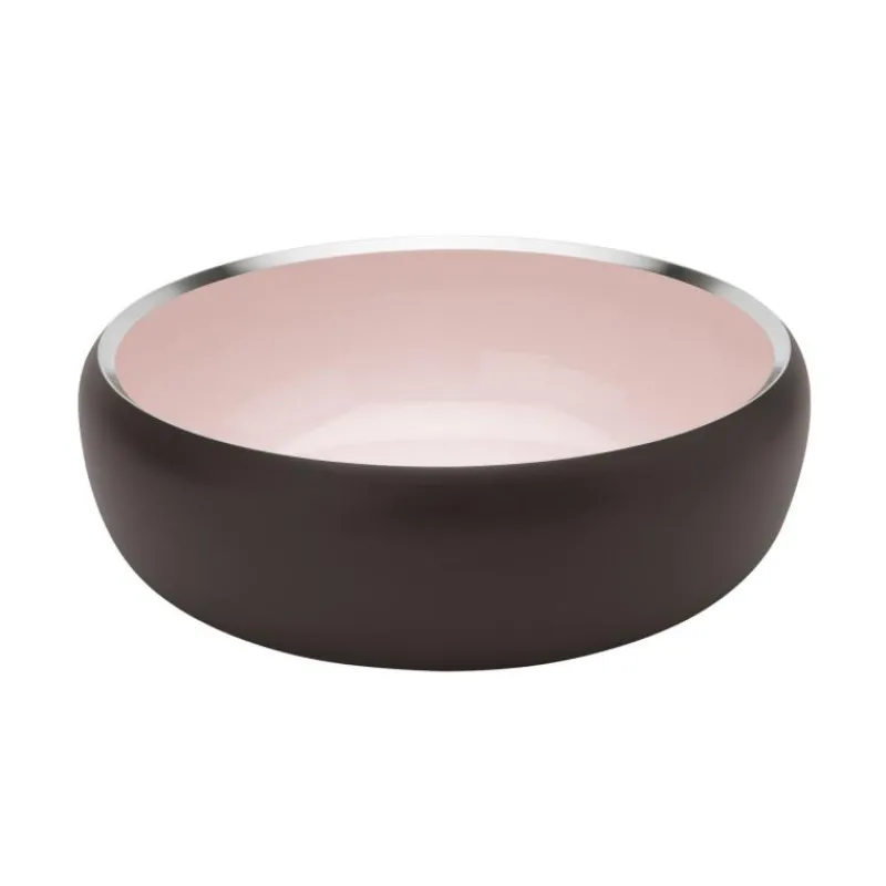 Die Serie Ora wurde vom italienischen Designerduo Daniel Debiasi und Federico Sandri entworfen. Die verschieden große Schalen der Serie sollen nicht nur praktische Begleiter im Alltag, sondern auch skulpturale Designobjekte darstellen, die ein Leben lang begleiten. Gekennzeichnet wird die Serie durch den Kontrast zwischen dem funktionellen Edelstahl und den weichen, organischen Formen der Schalen. Die Außenseite der Ora Schale Puderrosa 30 cm ist in der Farbe Dark Powder matt beschichtet, auf der rosafarbenen, glänzenden Innenseite entstehen raffinierte Lichtreflexe. Die Schale ist 10 cm hoch und hat einen Durchmesser von 30 cm. Sie sollte nur von Hand mit lauwarmen Wasser und einem milden Spülmittel gereinigt werden.
