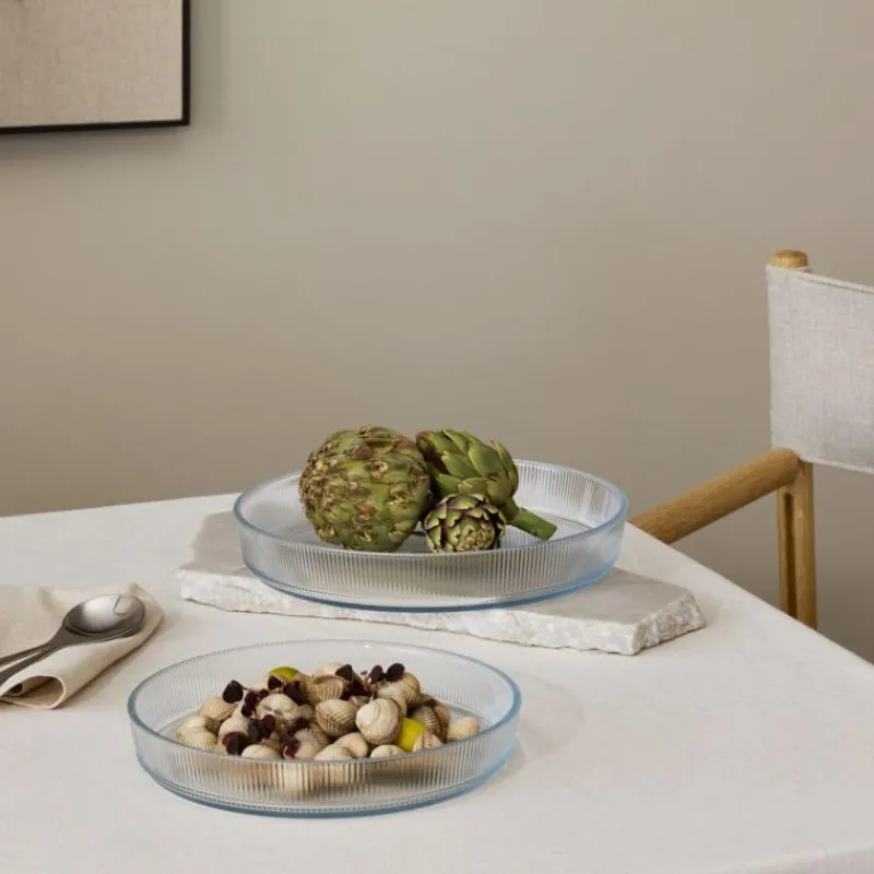 Der Entwurf der Pilastro- Auflaufform von Stelton stammt vom Designer Francis Cayouette, sie zeichnet sich durch ihren Minimalismus und besondere Raffinesse aus. Durch ihre schlichte Form und das transparente Glas passt die Form zu allen Einrichtungen und anderen Geschirrserien, gleichzeitig ist sie sehr robust und vielseitig und ist spülmaschinen-, ofen-, gefrier- und mikrowellengeeignet. Sie besteht aus geriffeltem, durchsichtigem Glas, hat einen Durchmesser von 24 cm und ist 4 cm hoch.
