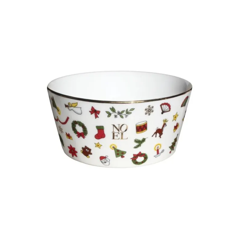 Dem verspielten Dekor der Serie Noel Oro mit tanzenden Schneeflocken, Sternen, Schneemännern und vielem weiteren liebevoll illustrierten Weihnachtsfiguren wird mit einem Faden aus reinem Gold am Rand ein Hauch von Luxus verliehen. Die modernen Formen der einzelnen Geschirrteile sorgen dafür, dass auf einer reich gedeckten Festtagstafel keine Wünsche mehr offen bleiben. Für alle, die die zauberhafte Magie von Weihnachten lieben, bietet Noel Oro ein goldenes Fest. Ob Obstsalat oder Tapas, kleine Desserts, Snacks oder passende Dips: mit der kleinen Schale mit einem Durchmesser von 12,5 cm können Sie köstliche Kleinigkeiten servieren und verspeisen. Von diesem kleinen Alleskönner kann man nie genug haben! Aufgrund der Verzierung mit 24-karätige Gold ist die Serie Noel Oro weder für die Spülmaschine noch für die Mikrowelle geeignet.